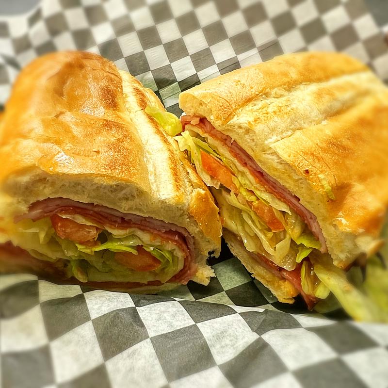 Baked ham, banana peppers, provolone cheese topped with lettuce, tomato and mayo.