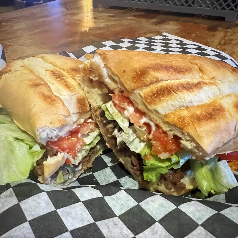 Shaved gyro meat, onions and pizza cheese topped with lettuce, tomato and mayo.