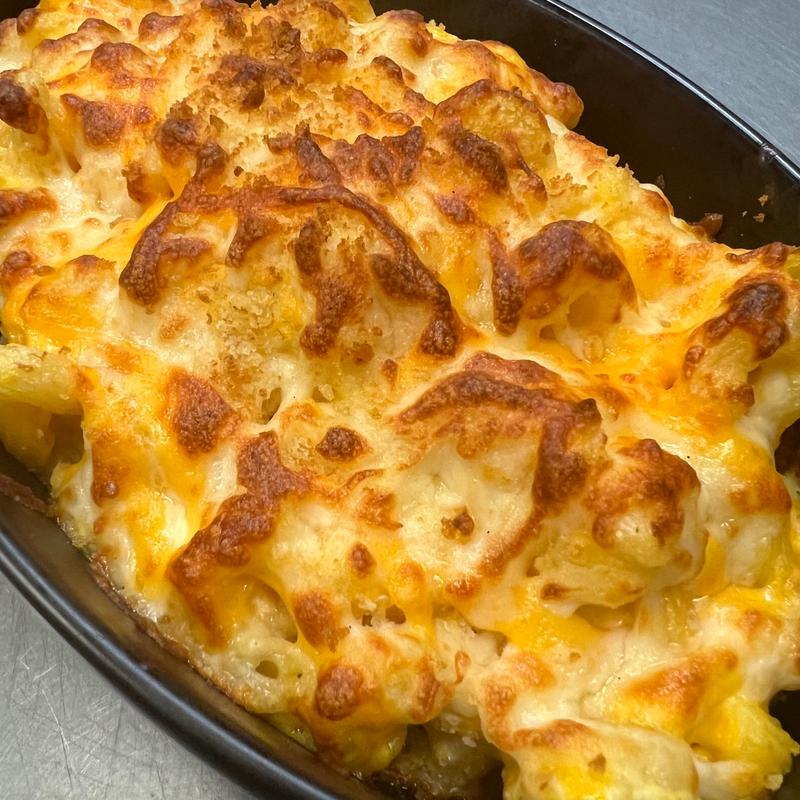 Cavatappi noodles tossed in a cheddar cheese blend then baked with seasoned panko crumbs. Kick it up a notch and make it a hot pepper bake or alfredo bake.